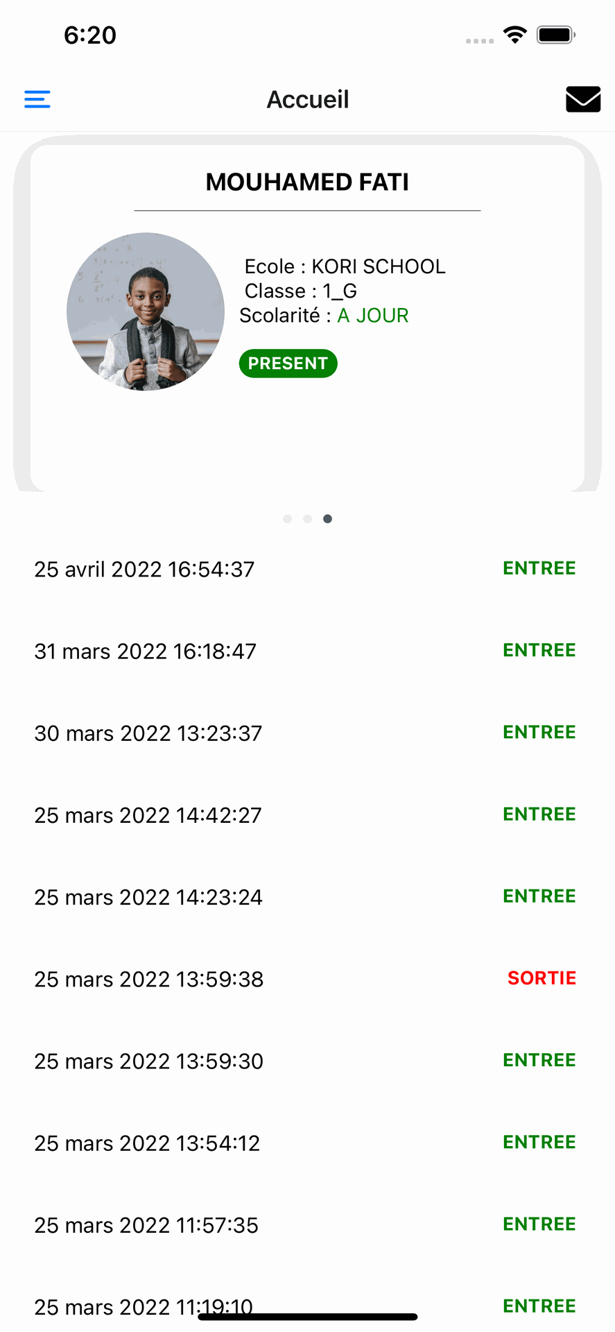 Notre application mobile dédiée aux parents permet de recevoir en temps réel toutes les notifications de pointage, les communications officielles de l’école et les factures de scolarité, avec la possibilité de régler par Mobile Money